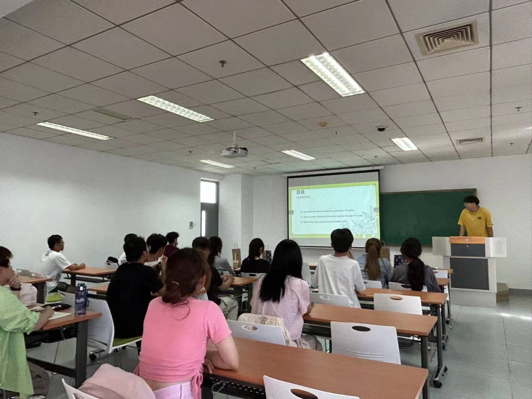王李一凡同学带领大家学习了英语对话中的深入理解,通过举《破产姐妹》中的例子,生动的给大家讲授了许多英语俚语。