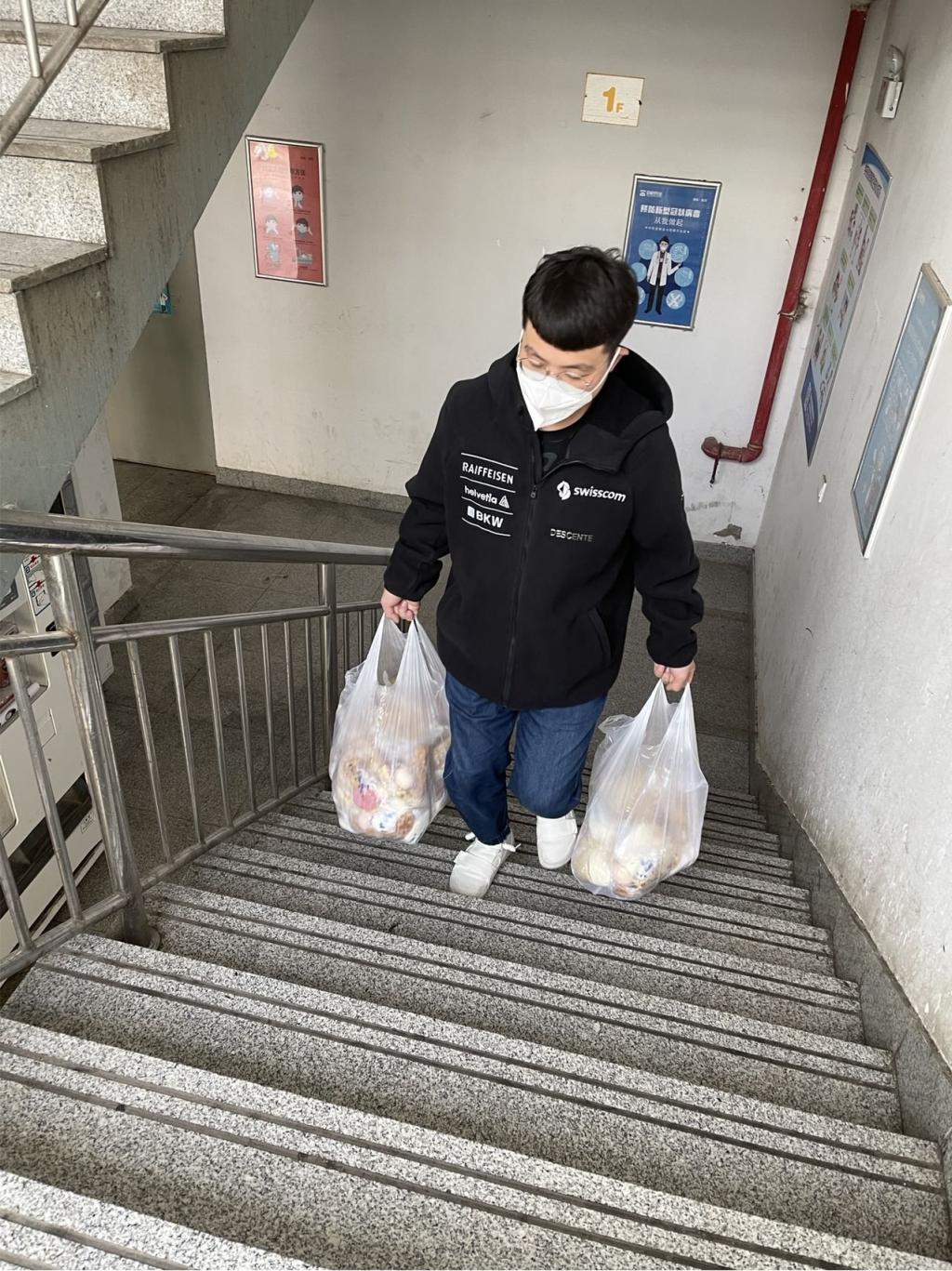 在公司封控期间在明德斋作为教师志愿者,他与BG大游平台辅导员一起服务员工,组织员工核酸检测、送水送饭,令员工在疫情防控期间深刻感受到公司上下一心共同防疫的众志成城,同时又体会到充满温情的人文关怀!