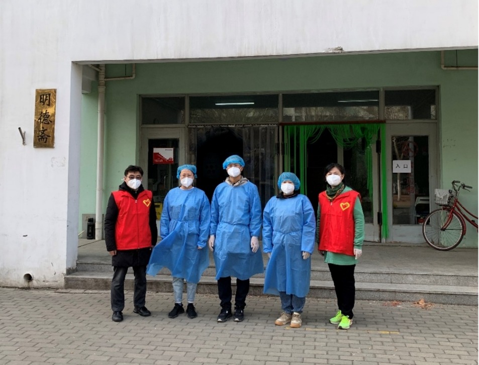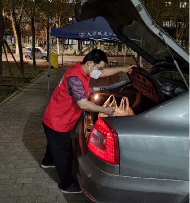 疫情发生以来,他负责致知斋的外部执勤工作。由于住在致知斋的员工都是男生,饭量大,每天晚上都有员工吃不饱。于是,他和宿舍内负责物资分配的教师一起,通过宿舍管理微信群,收集女生宿舍未分发完的盒饭信息,每天收集约150份盒饭,塞满后备箱,将盒饭送回致知斋的员工手中。通过这种方式,不仅安抚了员工的情绪,还有效避免了粮食的浪费,用情用力用心做好员工服务工作。