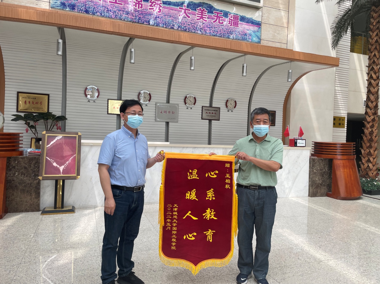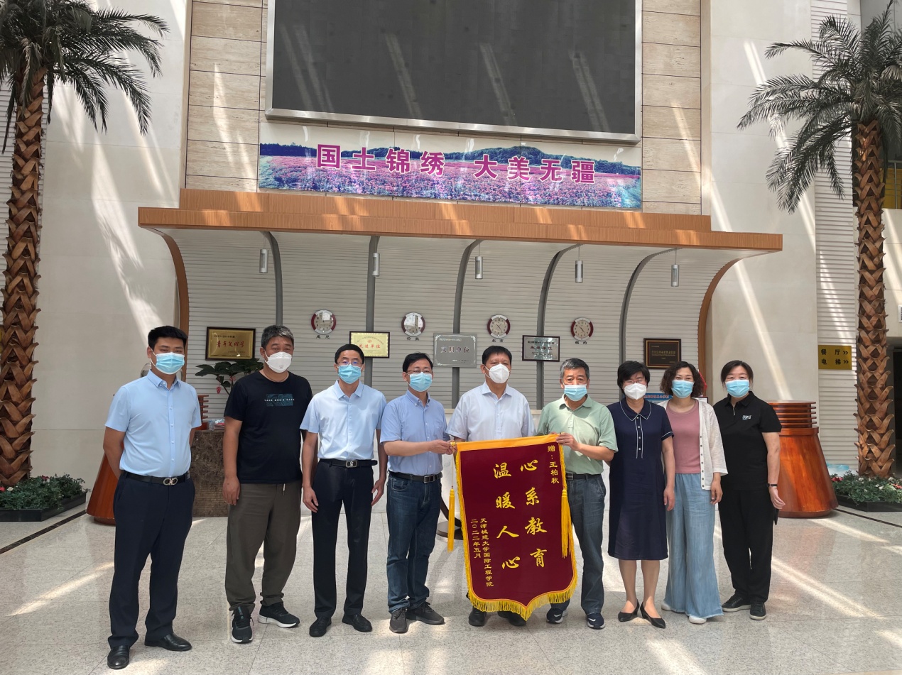 2022年4月,疫情突袭建园,BG大游平台90余名员工紧急转移到全行滨海会议中心隔离点,开始为期14天的集中隔离生活。疫情无情人有情,隔离点疫情防控工作专班的全体工作人员,舍小家为大家,无私奉献,悉心照料,让孩子们倍感温暖。为表达感谢之情,2022年6月14日,BG大游平台黄凌翔经理、李光旻副经理和辅导员李济言一行人赴天津全行滨海会议中心,为疫情防控工作专班班长王柏秋同志送上感谢信和锦旗。