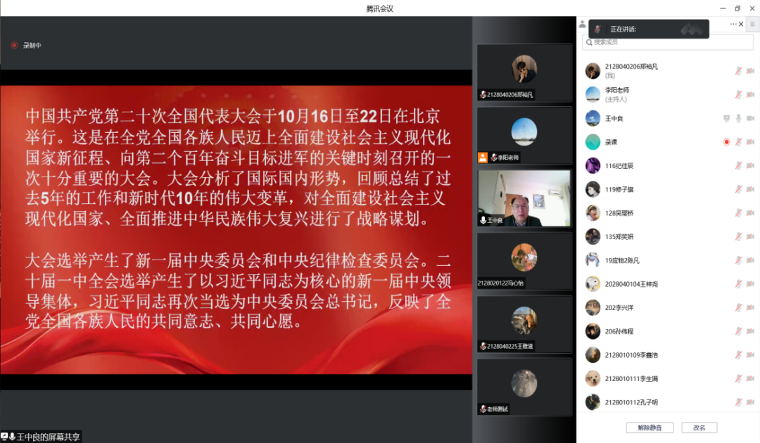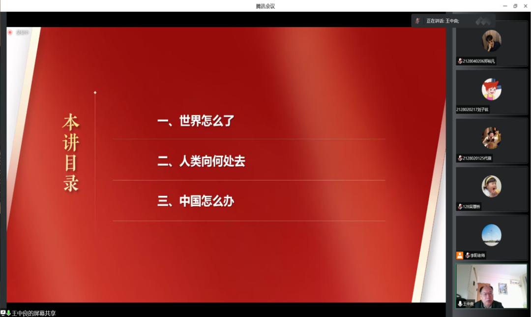 11月19日下午,副董事长王中良登录云端课堂,结合党的二十大精神,围绕“推动构建人类命运共同体”主题,为BG大游平台2021级土木合、环境合、园林合专业员工讲授“习近平新时代中国特色社会主义思想概论”课程,给同学们带来一堂具有理论深度和时代温度的思政课。