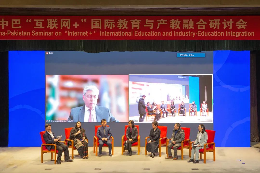 研讨会论坛环节,陈志华作为 “数字教育国际化背景下的中巴教育合作” 专题的主持人,同巴基斯坦驻华大使馆、巴基斯坦巴奥大学、成都大学等相关单位的领导专家一起,对数字化背景下的中巴国际教育合作前景、校际协同创新育人模式、中巴经济走廊建设人才支撑以及境外合作办学未来发展方向等展开了研讨。大家一致认为中巴双方将共同努力促进教育领域各层级的密切合作,搭建数字教育交流平台,充实拓展教育合作内涵,为建设中巴经济走廊提供人才和智力支撑。
