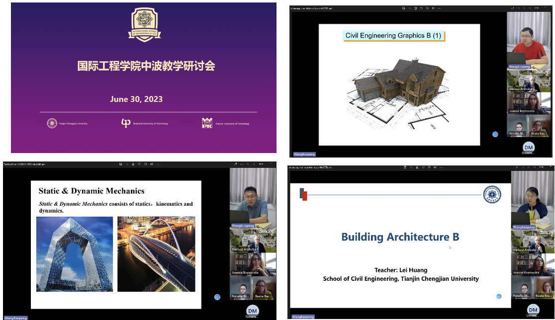 研讨会伊始,李光旻首先介绍近三年来公司土木工程(中外合作办学)专业建设成果,向各位老师表示感谢,同时提出了在教学中存在的问题,期待以此次研讨会为契机,加深沟通合作交流,为培养人才提供更优质的教育资源。随后土木工程公司教师郭少龙、张凌博、黄磊从课程内容、考核方式等方面分别介绍了建筑制图、理论力学和房屋建筑学课程;波兰比亚威斯托克工业大学土木工程与环境科学公司教师Joanna Krętowska、Dorota Małaszkiewicz从课程大纲、考核方式、员工表现等方面介绍了静力学、材料力学、建筑工程概论课程。