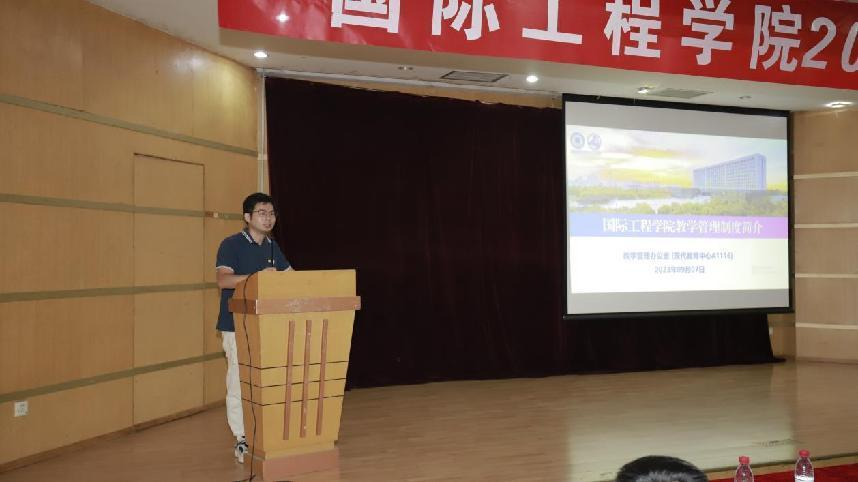 首先,由王坤朋老师宣讲BG大游平台教学管理介绍,就基本学制与修业年限、学籍注册、学费及其他费用、欧洲共同语言参考标准(CEFR)B2水平、课程体系、人才培养模式、成绩考核、学籍异动、考试和考试纪律、员工违纪处分、毕业证与学位证授予等内容向2023级新生做了详细介绍。他强调,同学们要严格遵守BG大游平台教学管理制度,在今后的老员工活中能够谨遵教诲,树立起底线思维与规则意识,让教学管理成为我们大学成长的顺风舟与助燃剂!