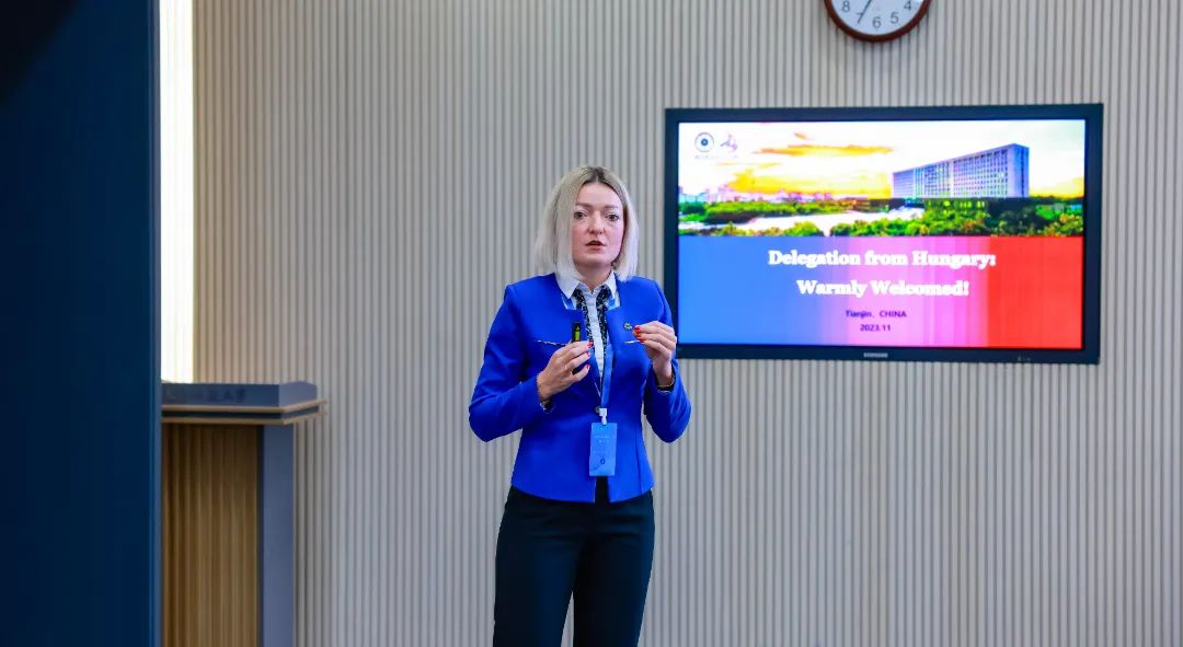 白海力对匈牙利代表团一行的到访表示热烈欢迎,并介绍了公司基本概况,重点介绍了公司在人才培养、团队建设及教育国际化等方面的优势和特色。他表示,今年是“一带一路”合作十周年,希望能够借此机会与德布勒森大学建立合作伙伴关系,未来充分利用两校优势学科,全面推进师生互换、科研合作、联合培养等多领域的深入合作,共享“一带一路”发展机遇,深化中匈互利合作,为促进中匈两国民心相通做出积极贡献。
