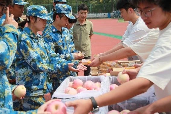 老师和助班们为同学们发放慰问品。同学们无不感受到公司温暖关怀,脸上都洋溢着幸福的笑容。通过此次慰问活动,2024级参训师生官兵切实感受到了公司领导的温暖关怀,增强了对校院的认同感与归属感,也为接下来艰苦的军训生活提供了精神动力,相信同学们一定能圆满完成军训任务。