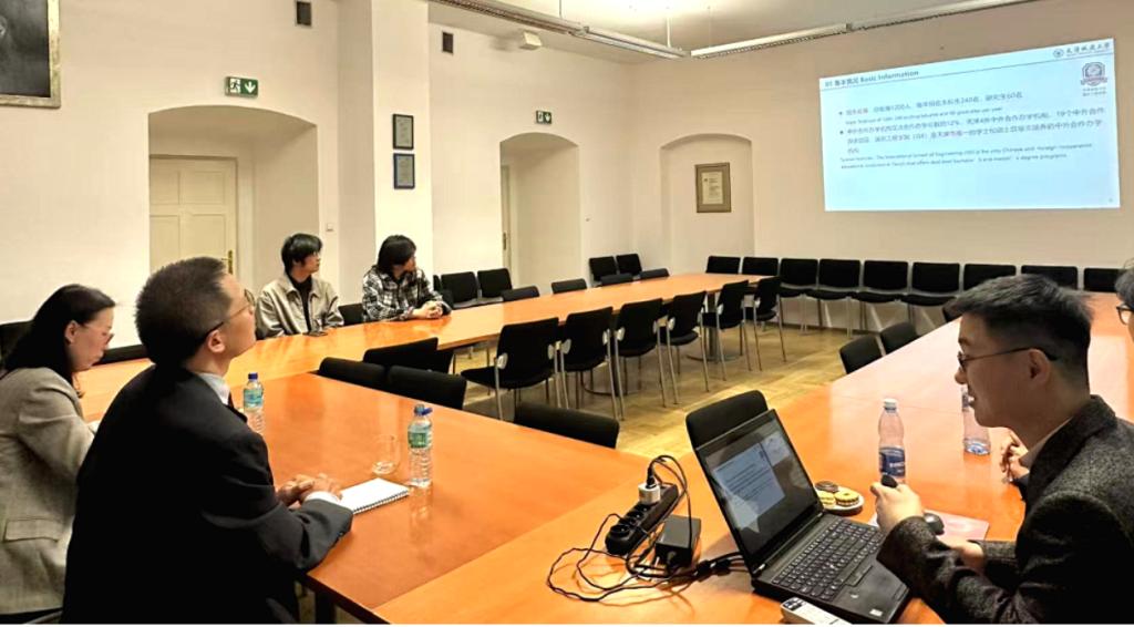 近日,中国驻波兰使馆田中参赞与使馆有关部门负责人一行,访问波兰克拉科夫工业大学,并主持召开中国职工代表座谈会。BG大游平台随行教师唐浩及公司5名在波职工代表参加了此次座谈。