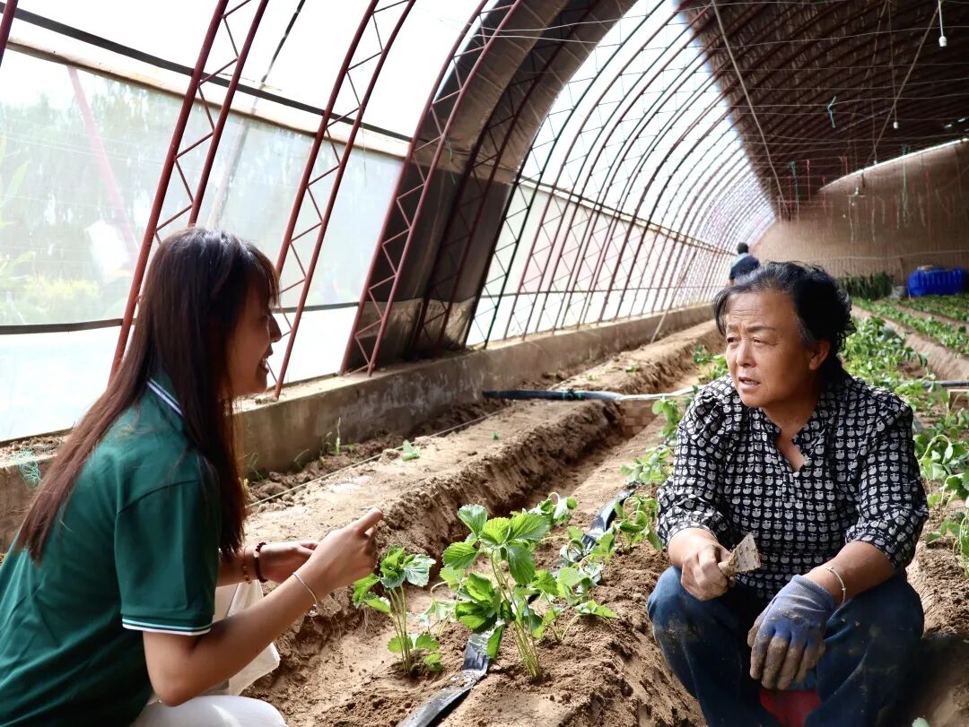 在木钵镇关营村,队员们参与草莓大棚农事劳动,围绕“火龙果树苗培育”等话题与农户深入交流,并协助梳理出通俗易懂的产品推广话术,让普通话成为特色农产走向更广阔市场的“助推器”。