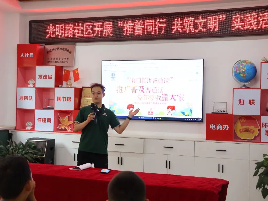 在环县光明路社区,团队面向20余名小员工开展普通话推广活动。在国画教学中纠正发音、规范表达;借助动画和问答形式的PPT讲解普通话知识;举办绕口令比赛,评选 “最佳发音小能手”,以趣味互动激发孩子们学习普通话的兴趣。
