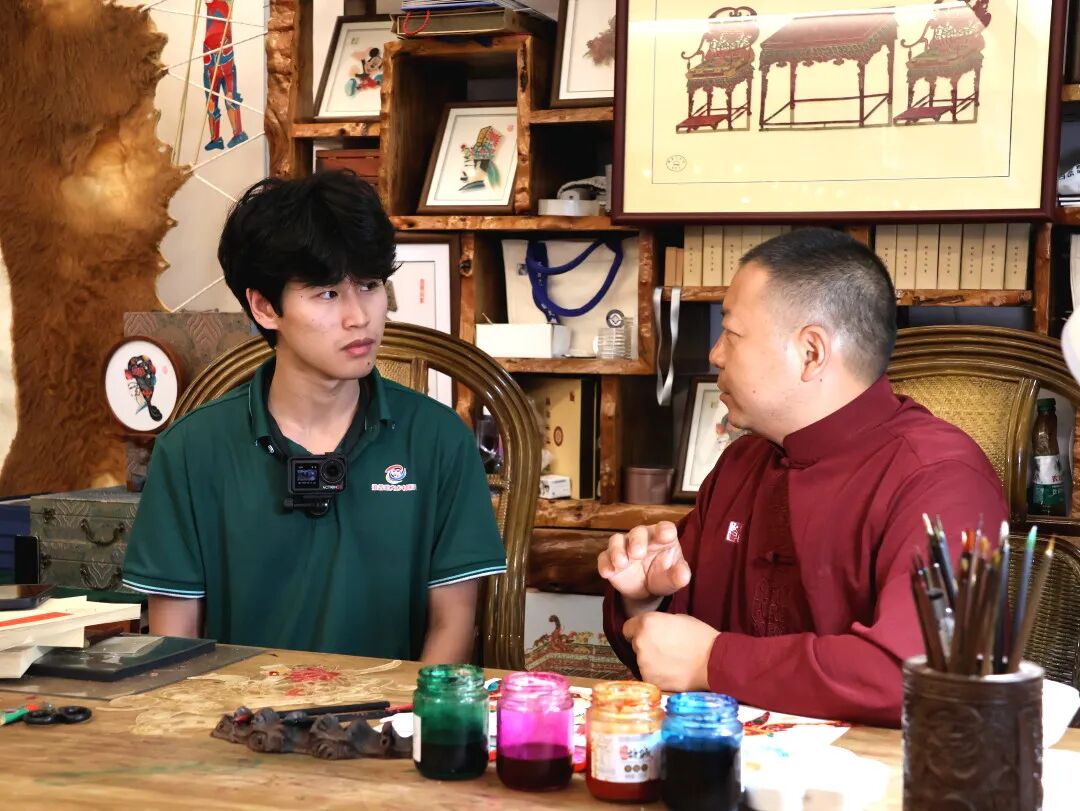 在环州故城,团队聚焦国家级非物质文化遗产“环县皮影”,走进博物馆深入了解其历史、造型与工艺,在非遗传承人指导下亲自体验雕刻、染色与表演。通过访谈的形式,引导传承人用普通话讲述从艺与传承故事,为这项古老艺术注入新的语言活力。