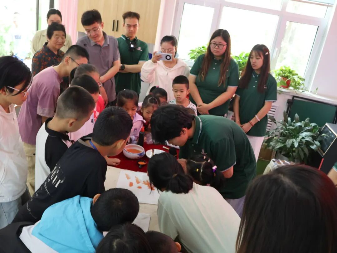在洪德镇耿塬畔村庄子卯生态农庄,团队多维度体验农耕文化,用普通话记录传统米醋酿造工艺,向村长请教农耕术语规范,手把手教村民学习普通话常用词汇,使语言学习真正融入乡土生活。