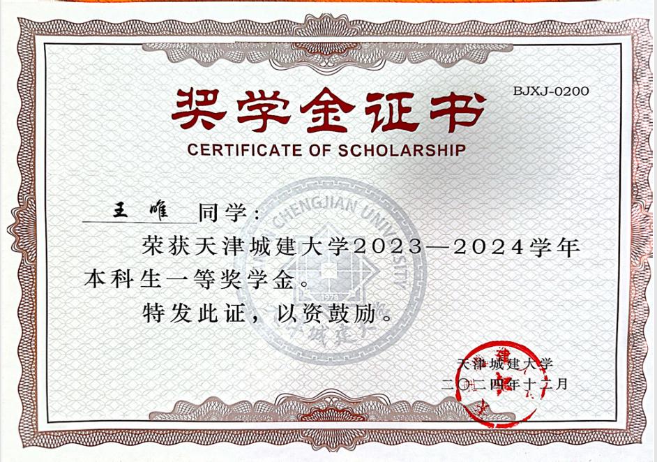 在学业方面,我始终秉持勤奋踏实、追求卓越的学习态度,最终以专业第一的优异成绩圆满完成本科学业。在校期间,我荣获一次校一等奖学金、两次校二等奖学金,并两次被评为“校优秀员工”,这些荣誉不仅是对我学习成果的肯定,更是对我综合素质的高度认可。在科研方面,我积极参与各类学术实践活动,曾在中国高校成图大赛中获得三等奖,进一步提升了我在工程制图与实践能力方面的水平。