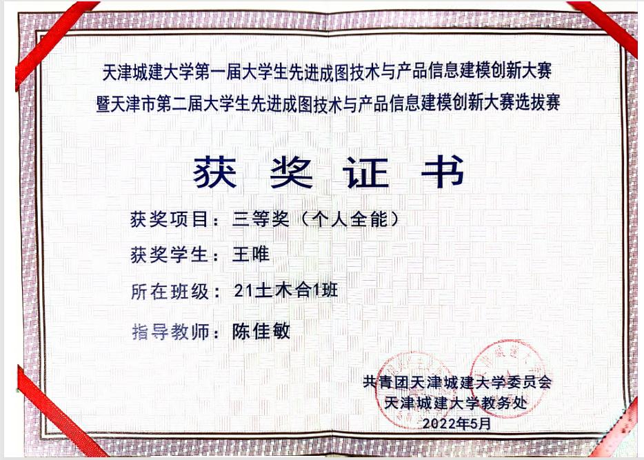 成图技术与产品信息建模创新大赛个人全能奖三等奖