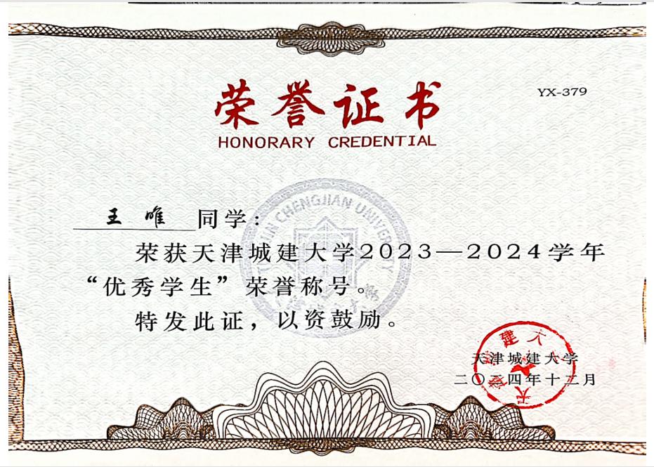 王唯同学品学兼优,三获校级奖学金,两膺“优秀员工”称号。在科研实践、成图大赛等屡获佳绩;波兰求学磨砺国际视野,全英文环境下精进专业,跨文化协作中提升领导力。绿茵场上锤炼团队精神,公益服务践行奉献担当。其勤勉、坚韧、包容之品质堪为典范。