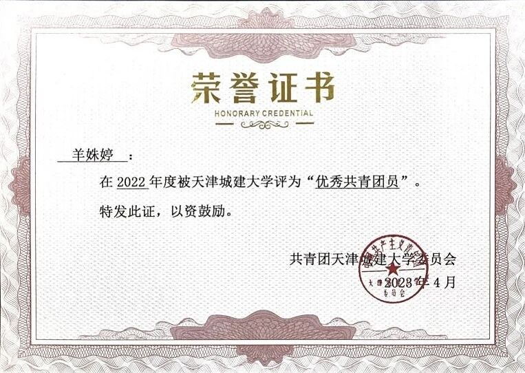 2022 “优秀共青团员”荣誉称号