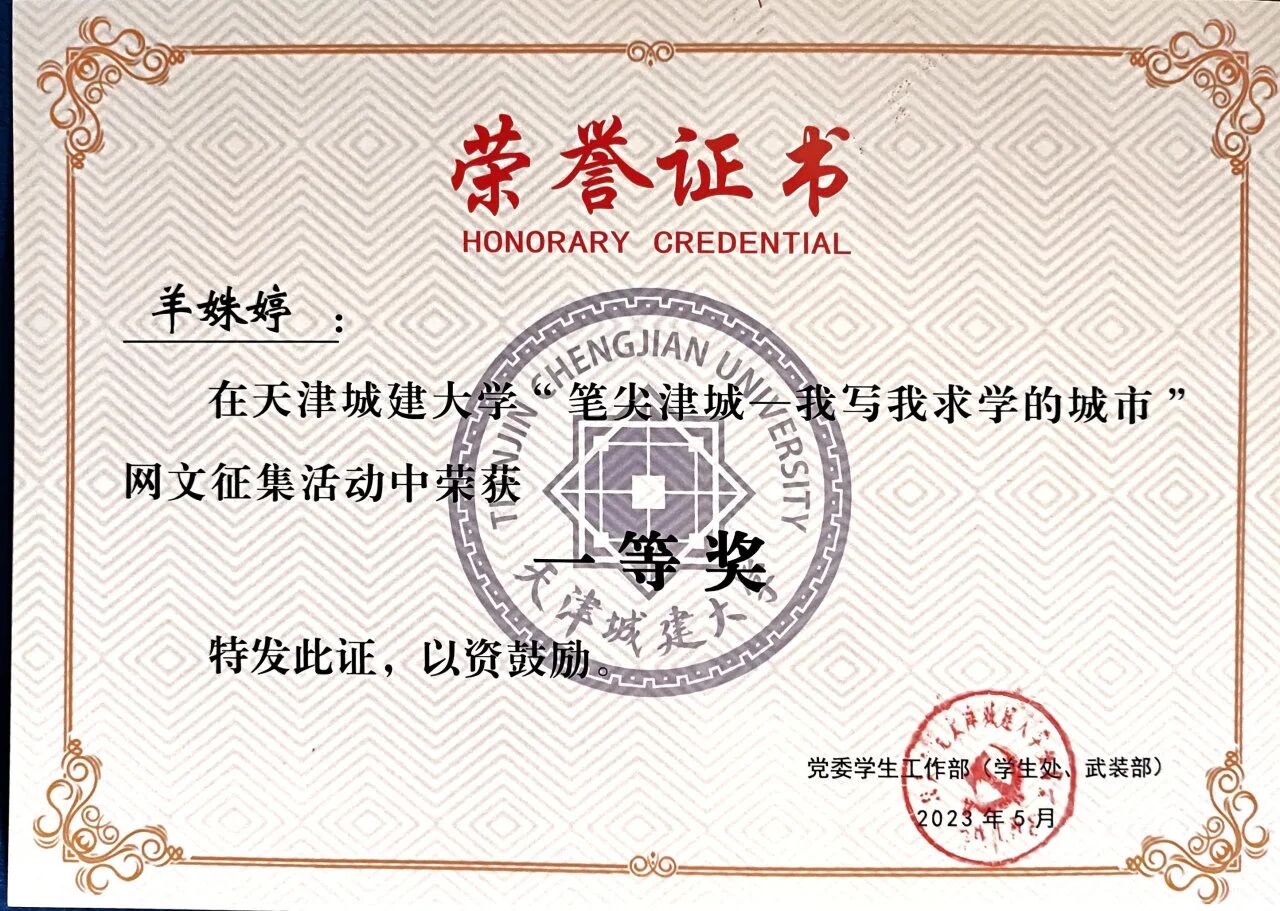 2023校“笔尖津城”我写我求学的城市网文征集大赛一等奖