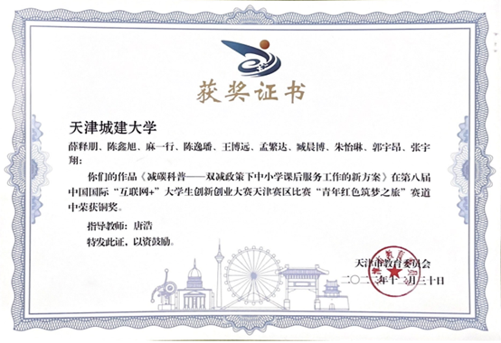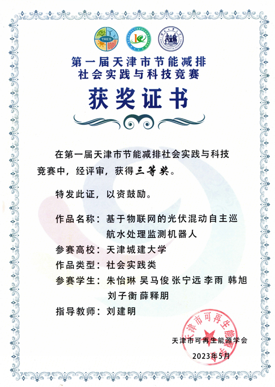 2022-2023学年 天津市节能减排社会实践与科技竞赛三等奖
