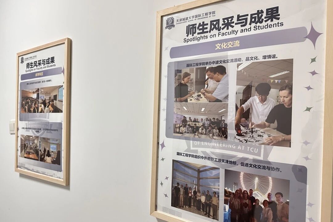 文化墙以“拓展国际视野,永葆家国情怀”为主题,将波兰交流学习同学的纪实图片引入员工社区。展览呈现员工课堂研讨、实验室操作及海外游学瞬间,为社区员工提供直观的海外学习参考。