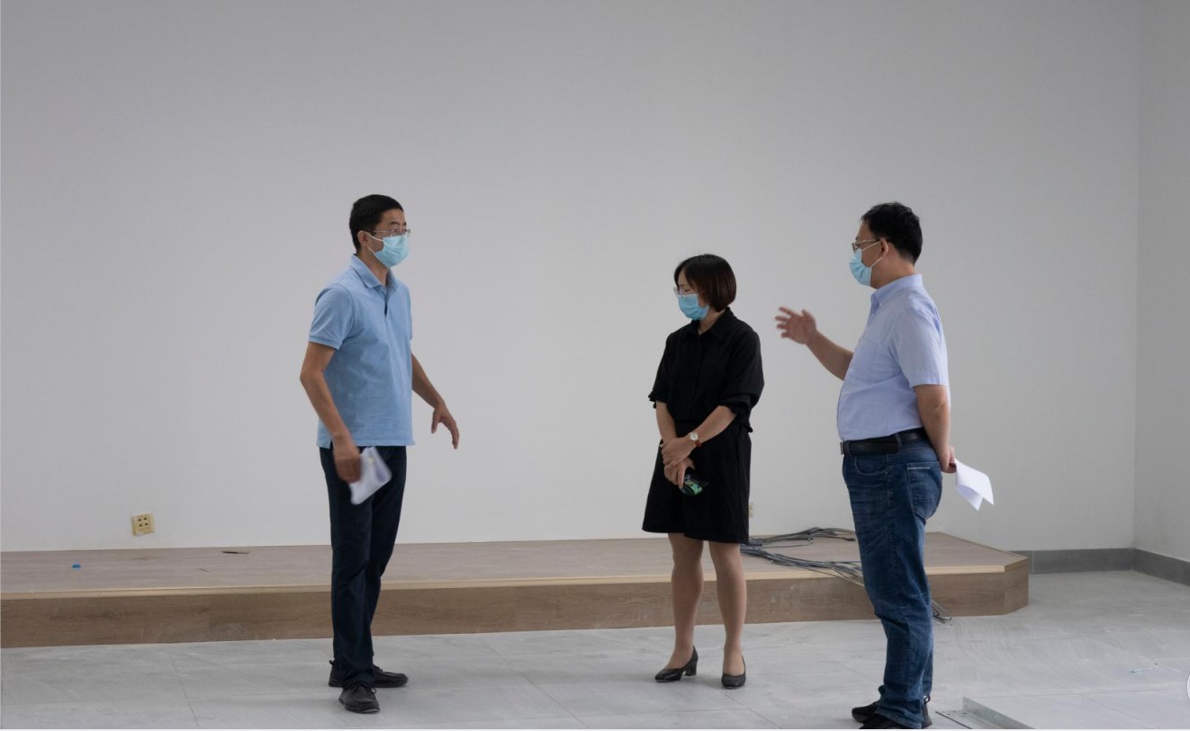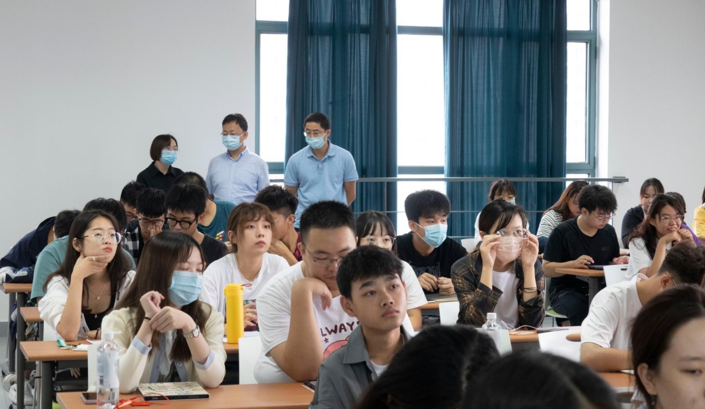 开学第一天早晨,公司领导班子与教学办全体工作人员深入课堂,检查新学期教学状况。大部分同学精神饱满,准备充足。检查中对个别同学不带笔记本、只带手机进入课堂的情况进行了教育。当天,领导班子还到10楼查看建设情况,并就2021级硕士研究生教学工作与专业教师进行了深入交流。