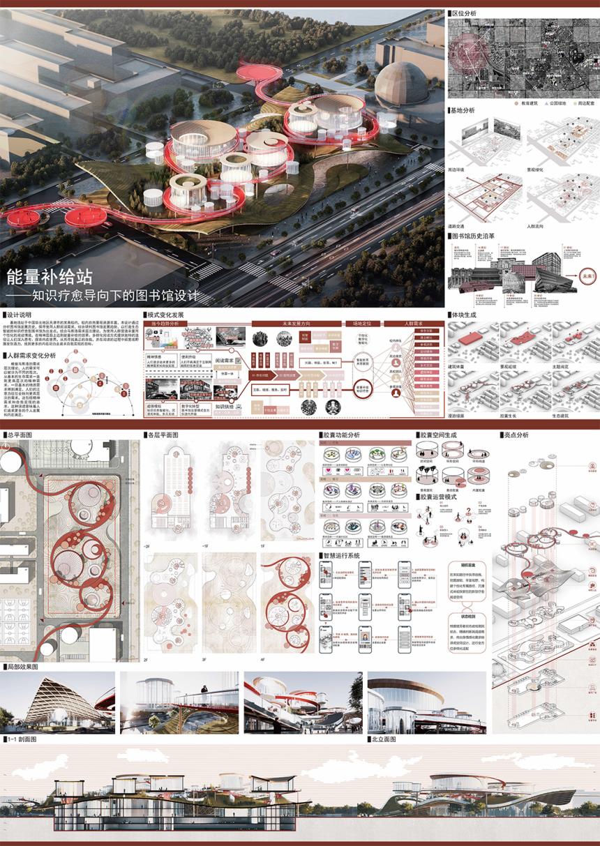 未来设计师·全国高校数字艺术设计大赛 省赛二等奖能量补给站——知识疗愈导向下的图书馆设计