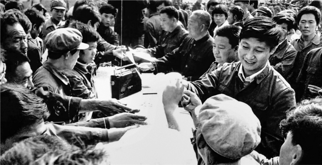 △1984年10月,习近平在正定县城街头发放民意调查表。