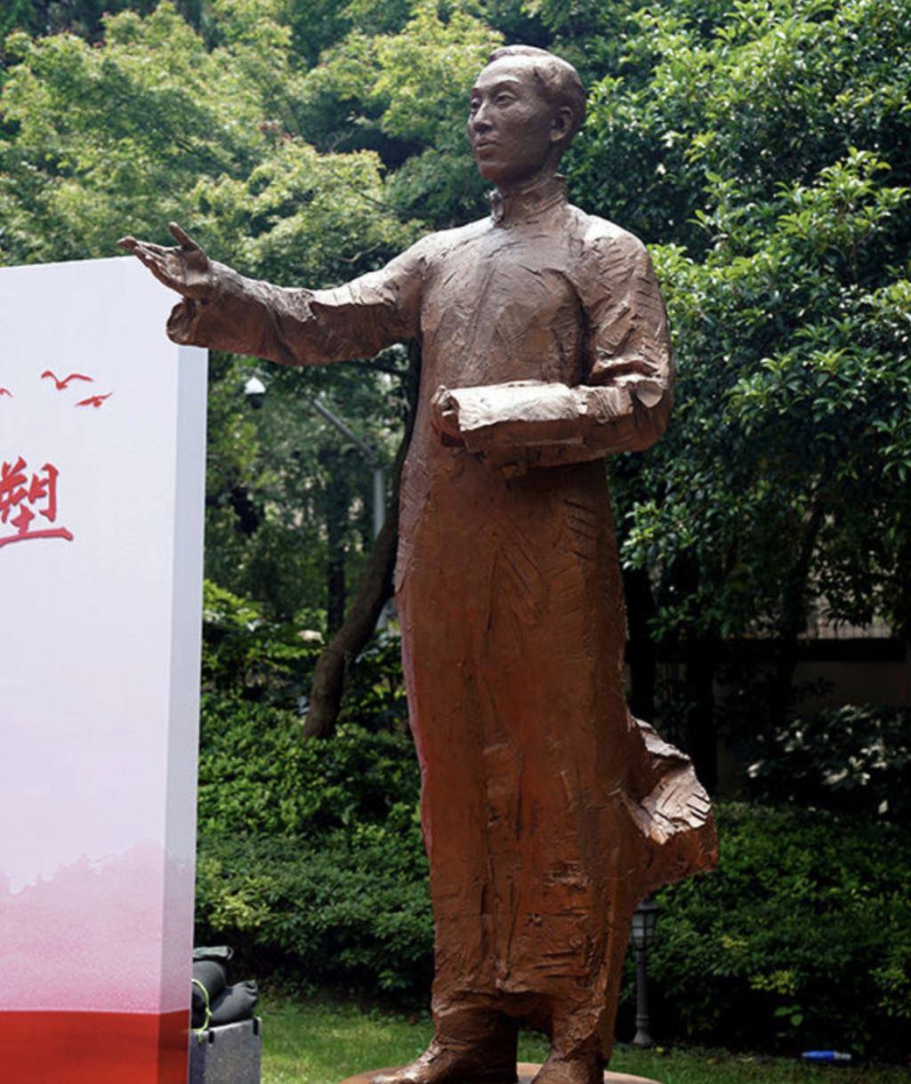 2021年6月11日,陈望道雕塑在上海复旦大学《共产党宣言》展示馆揭幕。