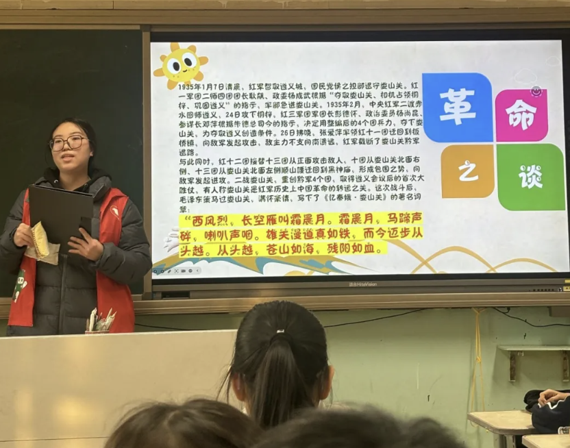 12月4日,志愿者们走进西青逸夫小学开展红色精神宣讲。精心制作的PPT,展现了革命先辈为新中国成立的艰辛历程,红军长征的艰难险阻让员工们眼中满是崇敬。