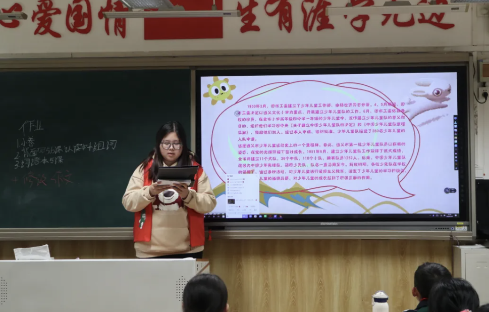 12月10日,志愿者们继续前往东咀小学,与孩子们分享遵义会议的历史故事。此次红色精神进校园活动围绕遵义会议历史故事精彩展开。志愿者借助精心制作的PPT,生动再现革命岁月,红军长征的艰难与遵义会议的关键决策如在眼前。同学们专注聆听,时而因红军困境皱眉,时而因会议决策钦佩。