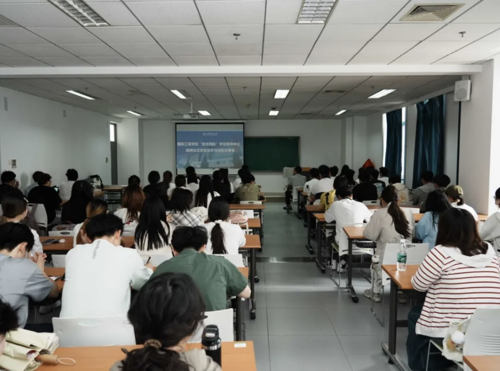 On April 30th, the International School of Engineering (ISE) successfully held the inauguration ceremony of the "Starlight Pilot" Student Advising Center and its first learning experience sharing session in Classroom 1020 of the Modern Education Building. Attendees included Yang Ping, Secretary of the Party General Branch; Huang Lingxiang, Dean of ISE; Kong Wei, Deputy Secretary of the Party General Branch; all counselors of ISE; and student representatives from the 2023 and 2024 intakes. Together, they witnessed a new chapter in the academic development initiatives of ISE.