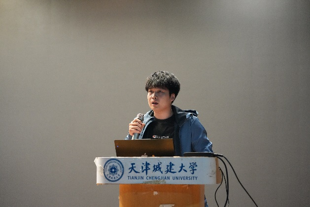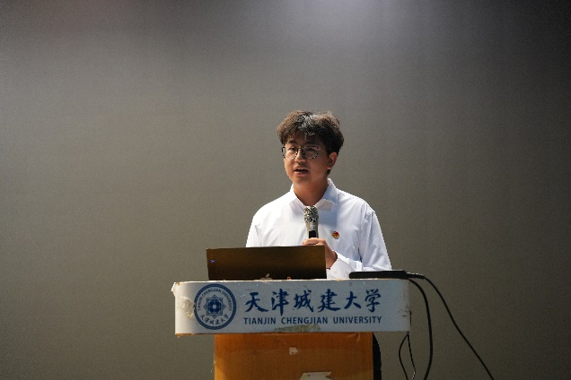 大会进行第六项,在校生代表、天津市优秀共青团员、天津市王克昌文化创新优秀奖、天津市创新创业奖学金获得者王博远首先对2024级新生的到来表示热烈欢迎,结合在校期间的所获所感,总结出:“一步一行看世界,一笔一绘谱青春”的求学经验,并希望每一名同学都能在天城大书写属于自己不一样的青春篇章。