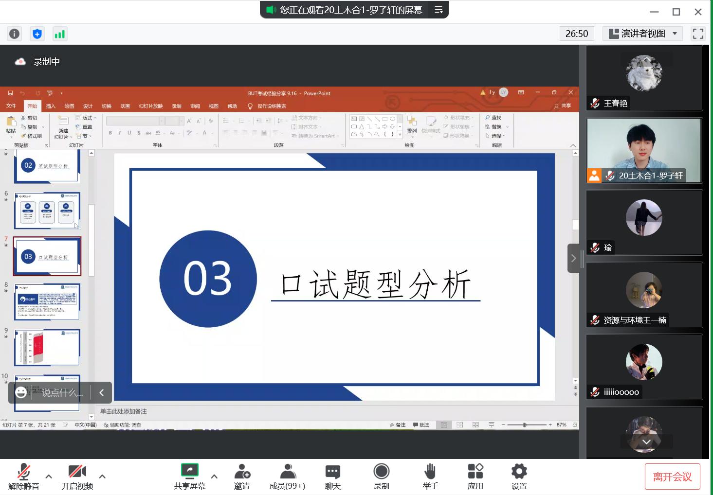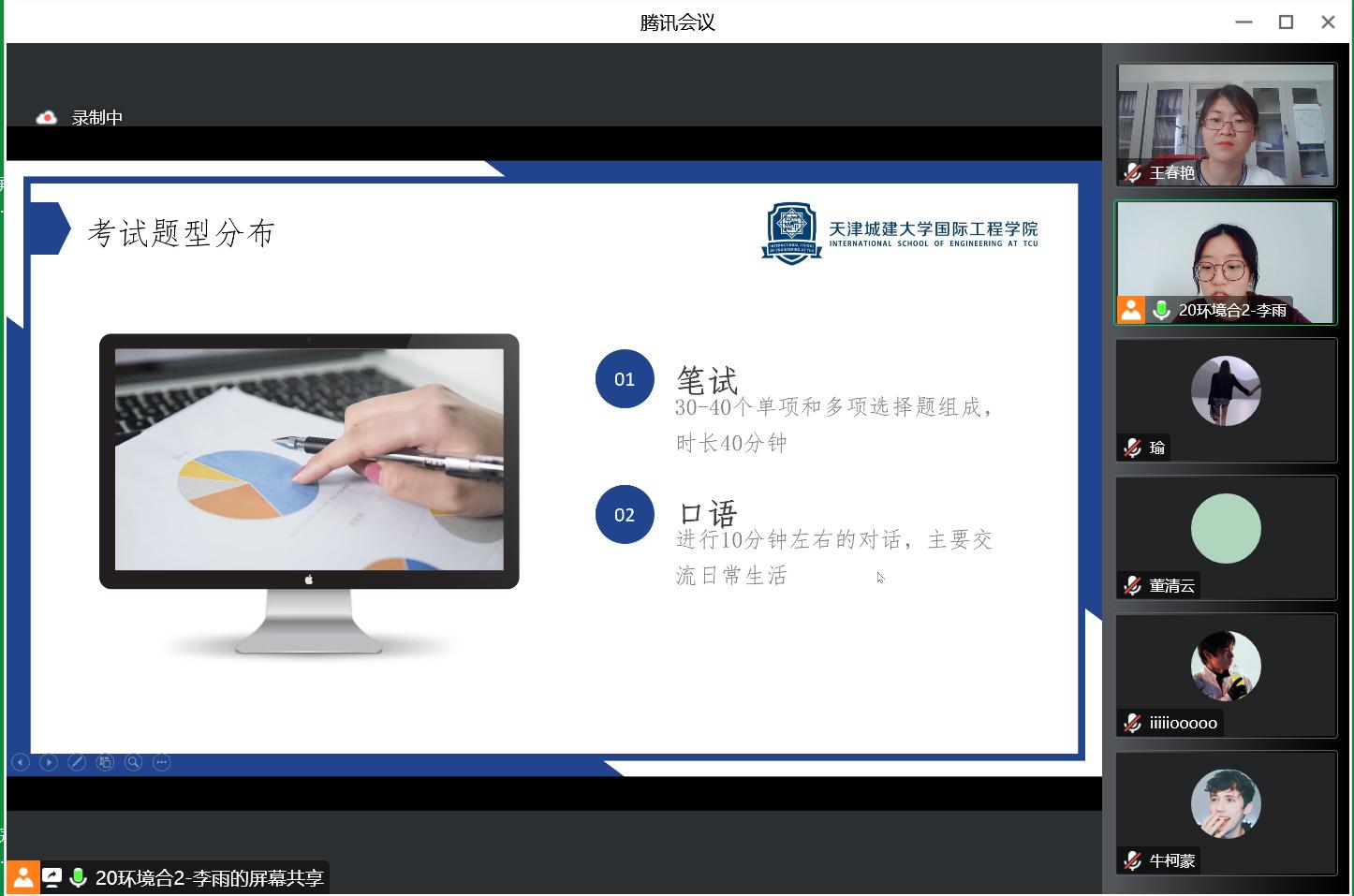 罗子轩同学以去年B2英语口语考试的满分视频为例,详细分析了口语考试的问答流程及应答技巧,让同学们更直观地了解B2考试的模式和题型,为同学们树立了优秀的学习范本。