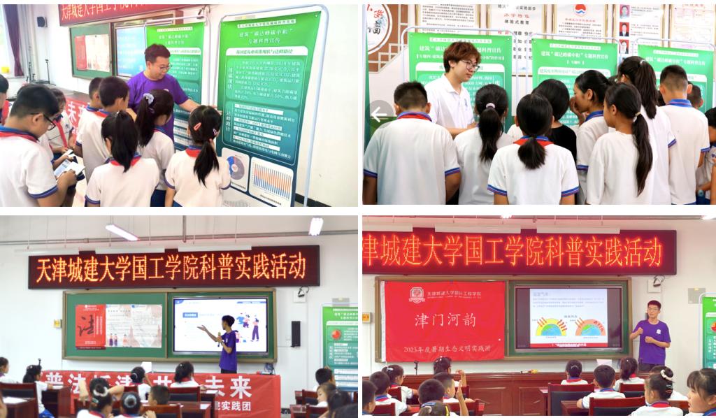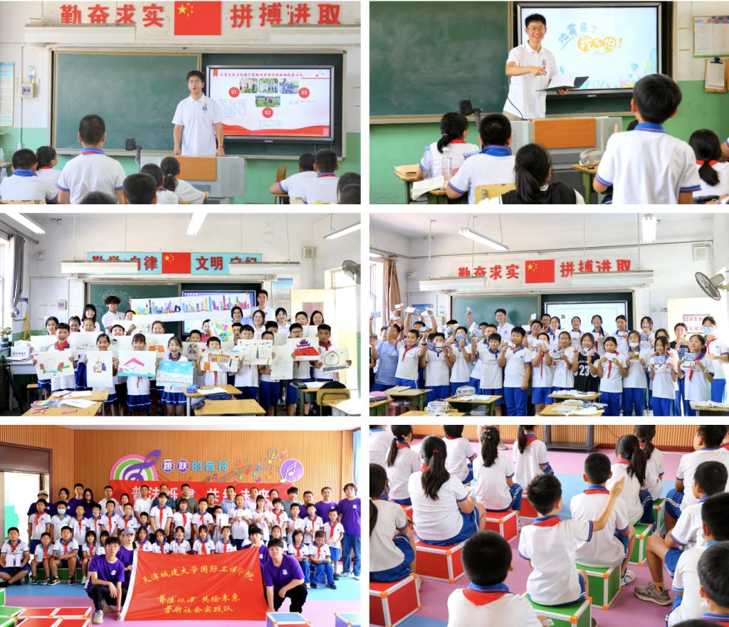 实践队分别赴宝坻区南王中心小学、卜庄小学和香铺王小学,开展生态文明科普、法治科普、抗震科普活动,为小员工们普及生态环保知识、法律知识和防震减灾知识,传播生态文明理念,提升同学们的自我保护意识,在他们心中种下一粒梦想的种子,点亮乡村少年的强国梦想。实践队成员精心设计制作了书签、明信片、模型和宣传册与小员工们进行分享,以青春之行促进乡村科普。
